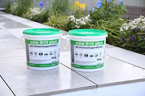 2-component, epoxy resin based, resin bound paving jointing mortars: The best and most technically sound solution for good quality, high performance, external grade porcelain paving jointing in our experience, is a high performance, 2-part, epoxy resin bound, graded fine alluvial sand based jointing system. This unique technical solution is provided by using the most appropriate GftK Paving Joint Mortar according to the porcelain tile joint widths i.e. 2-part, epoxy resin based, GftK vdw 815+ or GftK vdw 850+, for joint widths from >3mm or >5mm respectively, which are undoubtedly the best we have seen for durable external porcelain tile jointing / pointing., without cracking issues. Cement style shrinkage cracking is always a ‘none-issue’ with GftK’s 2-part, vdw range of epoxy resin jointing products. The only permeability related issue for the UK, only happens with 1-part, vacuum packed paving joint compounds; as these will quickly discolour and allow algae and other green growths to collect in the pores and as they cannot be jet-washed and cleaning chemical discolour them, the green discoloration cannot be removed – another reason to avoid this type of inferior products for quality porcelain paving!