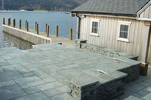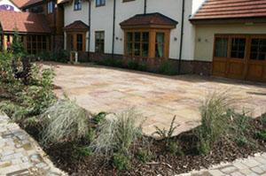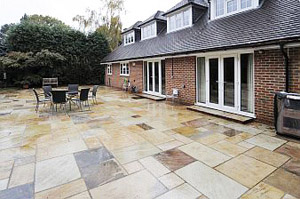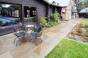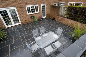 The extensive paving for the courtyard garden and pathways around this house in Farnham...