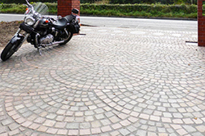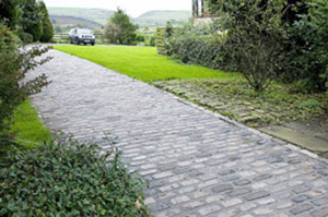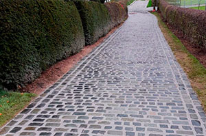 This prestige stone driveway was created for the owner using 100mm rumbled magma granite setts....