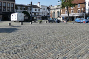 Hitchin Town Market Place in Hertfordshire had its historic granite sett paving refurbished and made safe for shoppers, retailers and heavy delivery vehicles, all in time for the Christmas Shopping Markets and Celebrations in December 2009 – Despite the tight, four-week installation programme being during October and November 2009, which were also the wettest and highest rainfall in these months on record at the time!