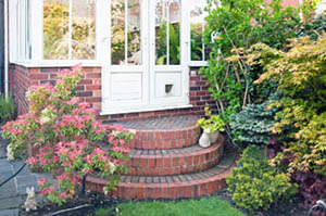 The attractive brick steps into the garden from the rear of this conservatory in Southport were made with...