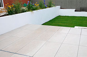 This new 70m2 porcelain patio was laid at the end of the normal season for external porcelain tile installation...