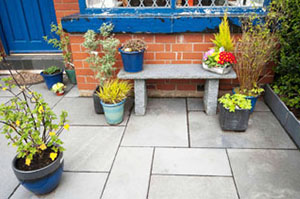 This front patio terrace and pathways in St. Mary’s Road, Bolton is laid in a random pattern using...