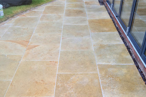 New natural stone patio jointing in Liverpool with GftK's vdw 850+, which is a unique, 2-part, epoxy resin based, graded alluvial sand product specifically designed for pointing and repoint natural stone and quality concrete and other paving units.