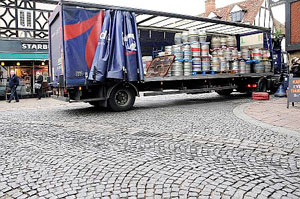Background: In November 2015, Heavitree Brewery redeveloped the old George & Dragon pub in Dartmouth, to a new destination venue, including a large (~200m2) paved beer garden, with Black Limestone slabs and Granite setts for the main entrance & drop kerb to the road.