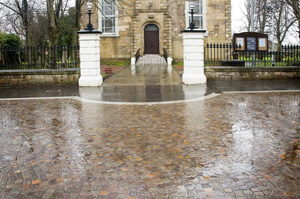 The problem was solved by repointing with GftK 800 Paving Jointing Mortar from NCC Streetscape, which has also significantly improved the appearance of the whole front of the property. This mortar can be applied quickly and efficiently as a self compacting slurry, even in cold and wet conditions – this job was easily completed without weather delays in the cold and extremely wet month of November 2009.