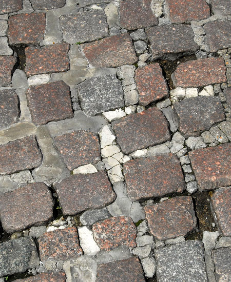 There is a basic difference in the requirement of paving units depending on their size. Basically, larger format paving (typically units larger than 400mm x 400mm) can be considered more ‘bedding dependent’, whilst ‘small format paving’ (units less than 400mm x 400mm) can be said to be more ‘jointing dependent’. Generally, this is especially important to accommodate and transfer thermal movement, vehicle loadings (both static and dynamic), and to resist freeze-thaw action, as well as cleaning regimes such as high-pressure jet-washing, and/or mechanical street cleaning equipment etc. For larger format paving the joint material is still very important, as the ratio of joint surface area and volume to the paving element surfaces is very low, meaning any lateral movement or stress on the joints, including thermal movement, will be limited by this capability in the joints. This is also one of the reasons such larger format paving should not be used for heavy vehicular trafficked areas without special measures including thicker slabs and wider joints etc. For smaller joints, one key difference from larger format paving is their much greater thickness, in domestic driveways these maybe only 50mm, with the traditional stone sett thicknesses used in the UK’s town centres and market squares being from minimum 100mm, up to more than 200mm deep, according to the type of structure and requirements, as well as history, though much of this was before the development of 40 tonne articulated vehicles. Successful small format paving requires that the jointing material has the capacity to allow and accommodate lateral movement and stress transfer under the anticipated traffic load, with flexural tensile strength being far more important than the compressive strength, as all the load is imposed on the paving units, whilst the movement and environmental exposure must be accommodated in the joints.