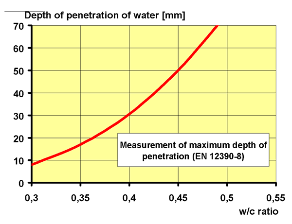 Figure 2. Cement Mortar Porosity (as Penetration) vs Water : Cement Ratio