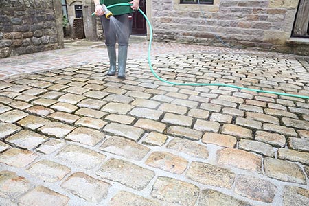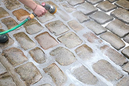 As GftK's vdw 850+ is applied to a pre-dampened surfaces it can be applied during wet weather, without waiting for the areas to dry after rainfall. The latest state-of-the-art vdw 850+ can even be applied in the pouring rain e.g. when needs must to finish a job and/or get paid! GftK's vdw 850+ is non staining during application on SSD surfaces and even on very sensitive stone surfaces, which can be maintained by pre-sealing with GftK’s vdw 950 3-in-1 impregnating sealer, which also then protects the finished paving against future water ingress, frost damage and staining.