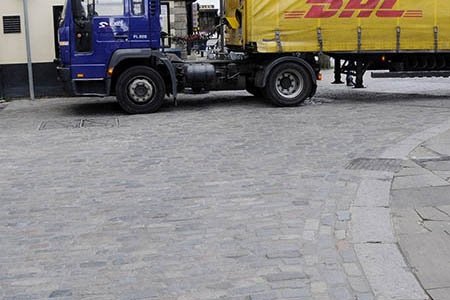 It is therefore ideal for the paving joints in many different load bearing paving situations, in different types of natural stone, reconstituted stone and concrete paving elements that are suitable themselves for these loadings, such as those in town centres, on busy roads and high impact intersections. It is also ideal for the delineation and reinforced edging and entrances to heavily trafficked facilities, roundabouts, vehicle loading and turning areas, plus for many and varied industrial, commercial and military facilities with heavy vehicle usage and hard standings.