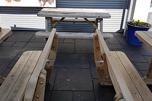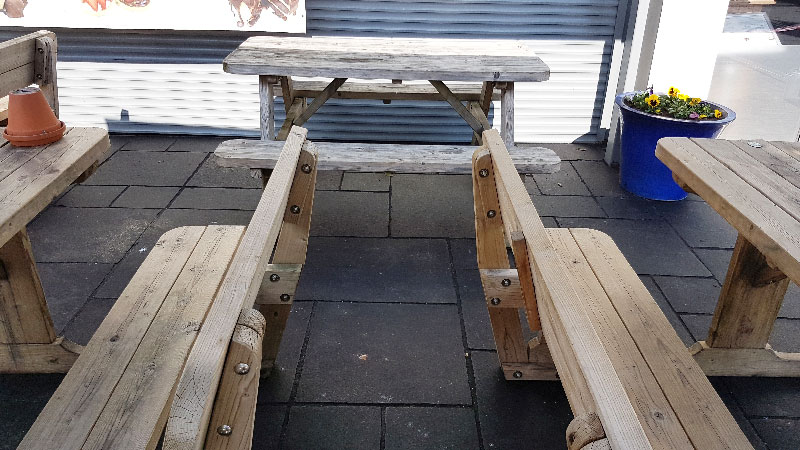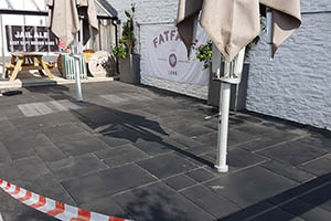 However, we have worked with some clever resin specialists and a couple of years ago they came up with a much better water dispersed, acrylic resin based product that gives a deep and dark, but matt finish, which is also very resistant to foot traffic across it. Indeed, we did a field trial on a popular Devon Pub’s Beer Garden Terraces a few weeks before their annual Music Festival in May 2018 - and as you can see in the pictures, it has stood up to this and other pub garden type traffic, with multiple spillages and general paving surface 'abuse' very well. This is now called NCC ‘Return to Black’ Stone Sealer, and is available in our Online shop.