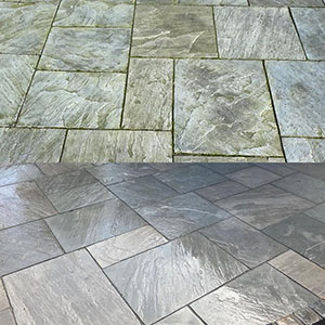 When looking to enhance the appearance and colour of their natural stone paving, people can often also want to provide a permanent ‘wet-look’ finish, which is understandable as after a summer shower the colours always seem heightened, more intense and with an attractive glossy wet-look, and many people would prefer to keep it this way. However, unfortunately this is not easy or straightforward, and therefore it is usually not advisable. This is because most glossy stone paving surface sealers that you can use to provide the ‘wet-look’, will subsequently dull and abrade very quickly under any form of traffic – including just with foot traffic. This would soon be very visible as a dull ‘pathway’ through the glossy surface, and it will no longer look so attractive – It is true that such gloss paving sealers can usually be refreshed quite easily with just another application on the surface (after cleaning), you might need to do this more often that you would like – at least annually we would suggest. A better and more durable alternative for most natural stone paved areas might be a paving sealer and colour enhancer with a more matt finish. (e.g. NCC Streetscape Natural Stone Sealer and Enhancer). This does not show or highlight any traffic use areas anywhere near as much as a gloss finish, and so this will provide a longer lasting and more attractive solution over the longer term. This type of sealer can also be reapplied easily when this is eventually required.