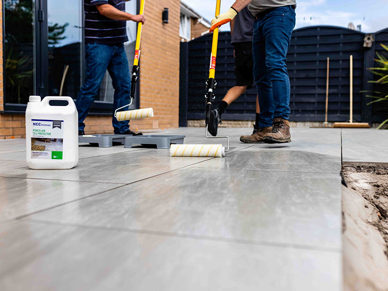 It can come as a surprise to many people that it can be a good idea to pre-seal and/or seal the surfaces to protect external porcelain tile paving, but this is an increasing trend. However, this is not because they are porous like some natural stone paving, but quite the reverse and their extremely dense surface and fine slip resistant profile can mean that they can easily pick-up surface staining from their installation grouting, and thereafter in service, which can then be very tough to remove, even by jet washing. To prevent this happening, external porcelain tile pre-sealing treatment is best made using a special surface tension breaking technology, which we have developed as NCC Porcelain Protector, more details are available here and it is available to buy in our Online Shop.