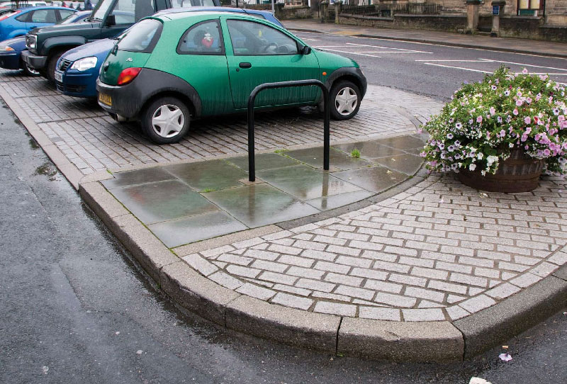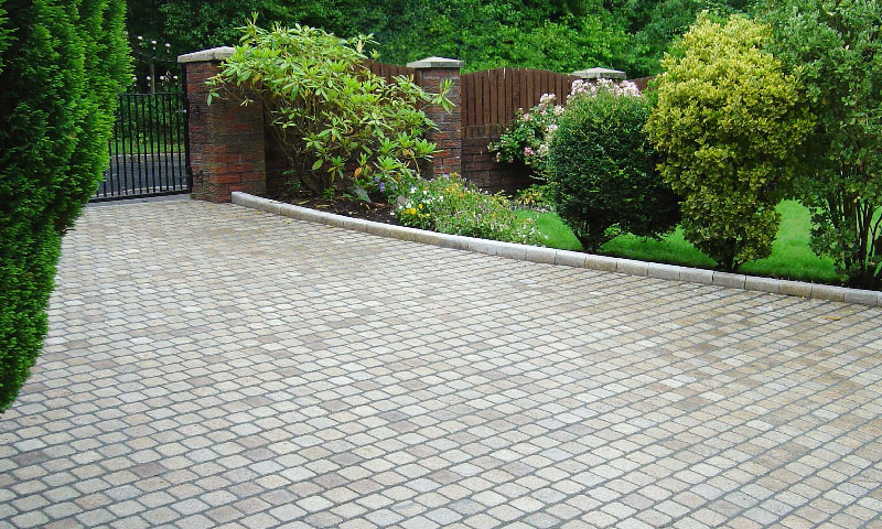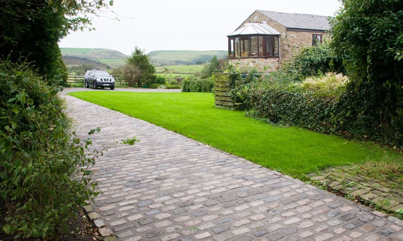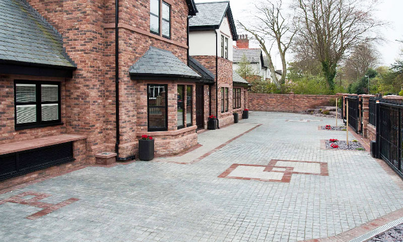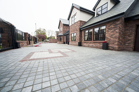 Driveways for both private and public buildings, as well as other designated car parking areas are frequently paved with hard wearing natural stone setts or dense commercial quality (usually mi 80mm thick for public areas) concrete blocks. These are used to provide an attractive appearance and a durable trafficked surface.