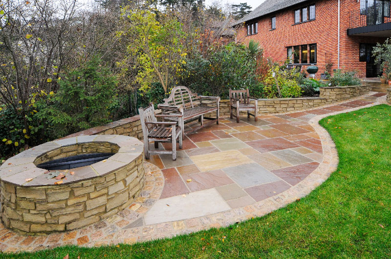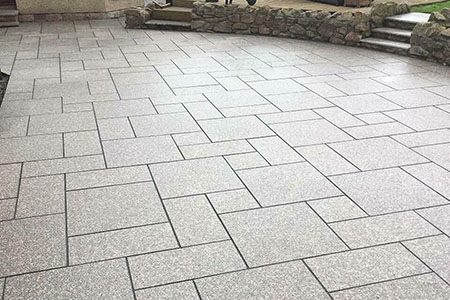 Patios and Garden Paths can be designed and built in all different shapes and sizes today, as do the joints between different paving elements. In bound paving (bedded and jointed), the different types of paving unit can include all types of natural stone setts or slabs and concrete blocks as individual square or oblong setts, plus rounded cobbles, clay brick pavers, as well as many different ceramics, including external porcelain tile paving.