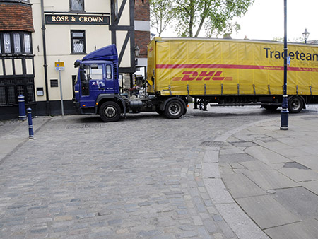 Unlike paving joints pointed with GftK’s advanced vdw range of paving jointing mortars, traditional lime or cement based paving jointing materials, even modern polymer modified ones, are unable to cope with today’s rapid installation demands, in whatever weather, and subsequently the severe modern exposure requirements. These can include the frequent heavy use of de-icing salts, high-pressure water jet cleaning and mechanical street cleaning machines, in addition of course to the increasingly frequent and increasingly heavy traffic from modern cars, vans and delivery trucks etc..