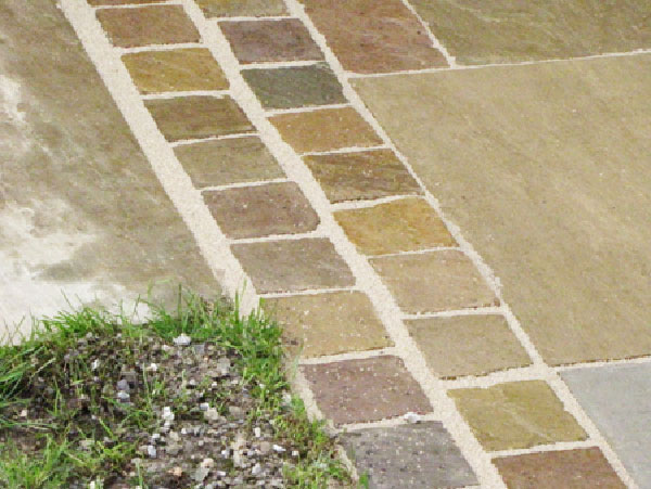 One component, vacuum-packed, ‘bag-in-a-tub’, polymeric sand jointing compounds or ‘wide jointing compounds’ as some are known (named by marketing men because as they do not contain cement they do not suffer from cement shrinkage cracking – probably their only good point, but outweighed by their other performance disadvantages!), were originally developed for DIY. Unfortunately, because of some manufacturers and builders merchants continually “over-promising”, they have also been used extensively by some contractors. This is primarily because they are quick and easy to install, usually as dry, or wet brush in compounds – BUT, none of these products are durable, they are not suitable for vehicle traffic, even on domestic driveways and cannot be cleaned by frequent jet-washing nor can they tolerate de-icing salt attack and have little resistance to staining, insect attack – or anything else. So cheap and quick yes, but we suggest that you only use this type of jointing product if your patio is more for show, or maybe when you are going to move shortly…!