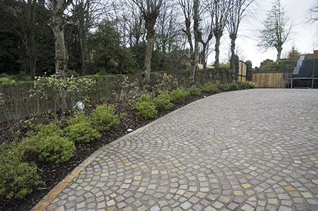 Today, because of the natural beauty and almost unlimited design possibilities with small format natural stone sets, with many traditional and regional patterns having been developed for laying over the years, there is also a growing trend for natural stone setts to be used for domestic driveways and patios. This is especially for the production of striking features such as stone circles or the wonderful herringbone patterns of Porphyry Stone Setts for example. On larger driveways with anticipated use by 4X 4’s and delivery vehicles, we strongly recommend maintaining the minimum Sett thickness of 100mm, but for decorative features and edgings in domestic pathways and patios there are good quality natural stone setts available in a huge range of stone types and colours from all over the world. These are from as low as 40mm depth which are suitable for limited pedestrian traffic areas only, or with depths from 50/60mm upwards for domestic / more limited traffic areas.