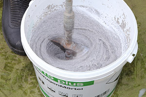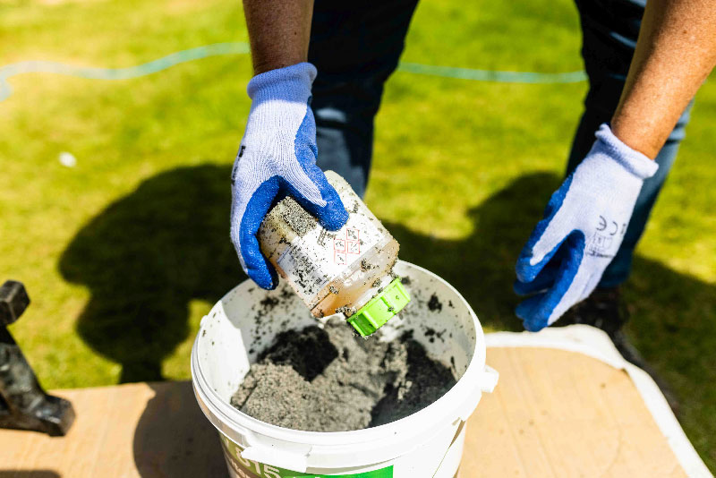 GftK's vdw 815 and 850 Paving Joint Mortars are unique, 2-component, epoxy resin based, materials that is designed for durable sealing of narrow joints, making it ideal for grouting porcelain paving with joint widths from 3mm, though the normally recommended spacing for larger format external porcelain tiles is 5-8mm to avoid edge issues. When grouting newly laid porcelain after the tiles are firmly bonded in position and strong enough to walk on, the surface must always be rinsed clean and then dried. This is also an opportune time to protect the pristine surface against future staining and resides for building works. This is done by applying NCC Porcelain Tile Protector and allowing this to dry, prior to the grouting operation. As the video shows, mix the 2-components of the GftK vdw 815+ together thoroughly until the mix is fully homogeneous, which should be for around 3 minutes. Pre-wet the paving and then pour out the vdw 815+ as shown, using more water to help it flow into the joints, you can't use too much water at this time. Continue moving the mortar with a rubber squeegee as it effectively self-compacts into the joints. Once filed leave for a few minutes and then use a wet coconut brush to remove any excess, using more water in a fine wide spray as required to remove any residual material and clean the surface. Job done!